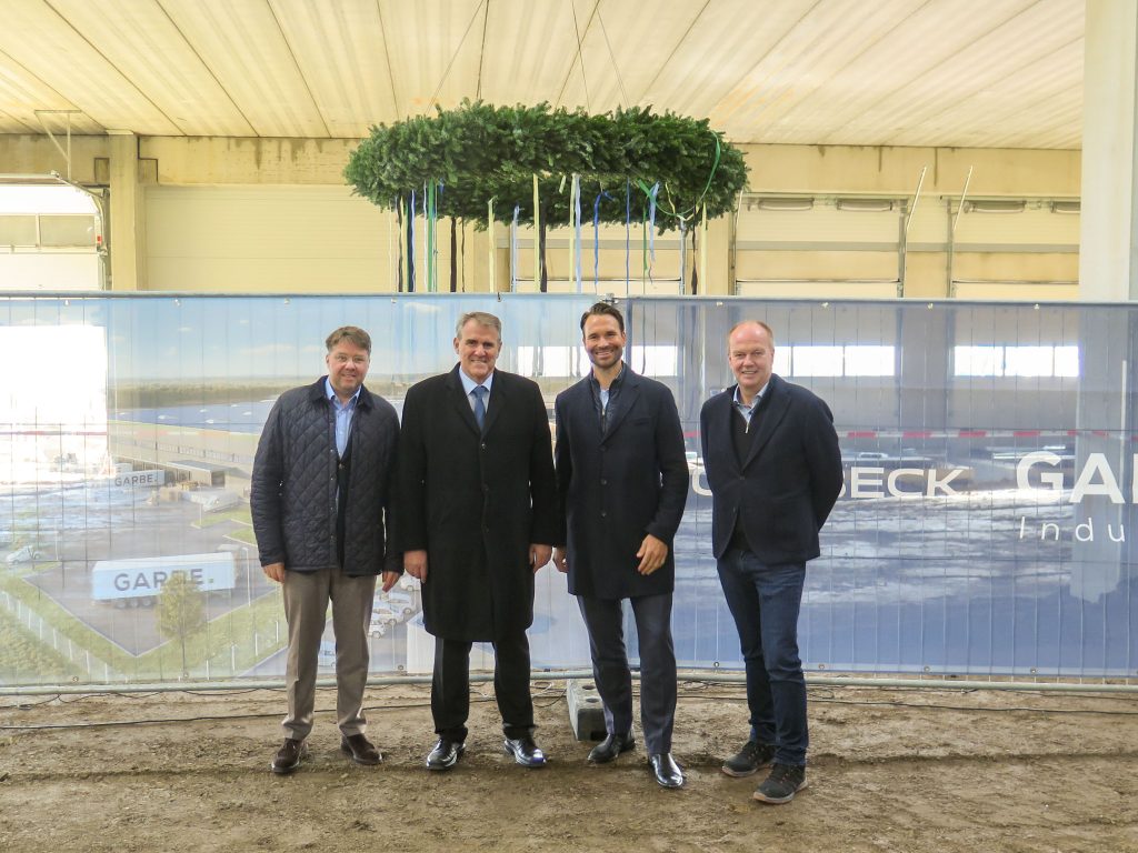 from left: Martin Ohly (General Manager Logicenters Germany), Christian Konrad (Mayor Leipheim), Adrian Zellner (Member of the Garbe Industrial Executive Board) und Bernd Meyer (Head of Project Management Bremen at Goldbeck).