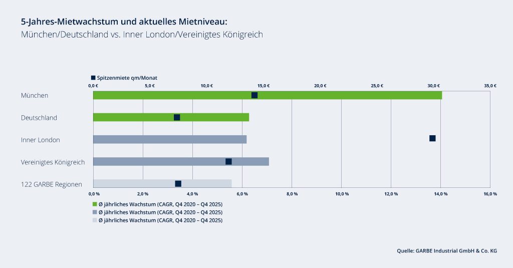 - München setzt sich weiter vom nationalen Mietniveau ab und festigt damit seine internationale Wettbewerbsposition