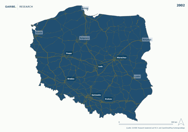 Die markante Steigerung der Attraktivität des Logistiksektors nahm ihren Anfang bereits mit Polens Beitritt zur EU 2004. Kurz darauf begannen einige internationale Unternehmen mit der Neuausrichtung ihrer Produktions- und Distributionsnetzwerke gen Osten. Aufgrund seiner strategischen Lage an der Kreuzung zahlreicher wichtiger europäischer Transportrouten, der günstigen Grundstücks- und Mietpreise, des geringen Lohnkostenniveaus sowie des vorhandenen Fachpersonals profitierte der Logistikmarkt Polens maßgeblich von der Neuorientierung der Unternehmen. Daneben sorgten und sorgen hohe Investitionen seitens des Staates in den Ausbau der Infrastruktur sowie auch umfassende Förderungen von der EU für eine zusätzliche Attraktivitätssteigerung. Allein 2019 flossen 3,3 Mrd. EUR in den Ausbau polnischer Landstraßen und Autobahnen. Aktuell sind Schnellstraßen in einer Länge von 1.290 km im Bau, rund 2.140 weitere Kilometer sind in konkreter Vorbereitung.[2] Mit einem Wirtschaftswachstum von 8,8 % im Bereich Transport/Logistik/Kommunikation ist die dortige Logistikbranche einer der am schnellsten wachsenden Sektoren der polnischen Wirtschaft. Bereits gegenwärtig ist der Bereich mit einem Anteil von mehr als 11 % an der nominalen Bruttowertschöpfung eine der tragenden Wirtschaftssäulen.[3]